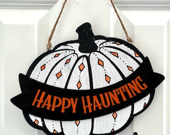 Happy Haunting sign, Trick or Treat Sign, Halloween sign, pumpkin sign